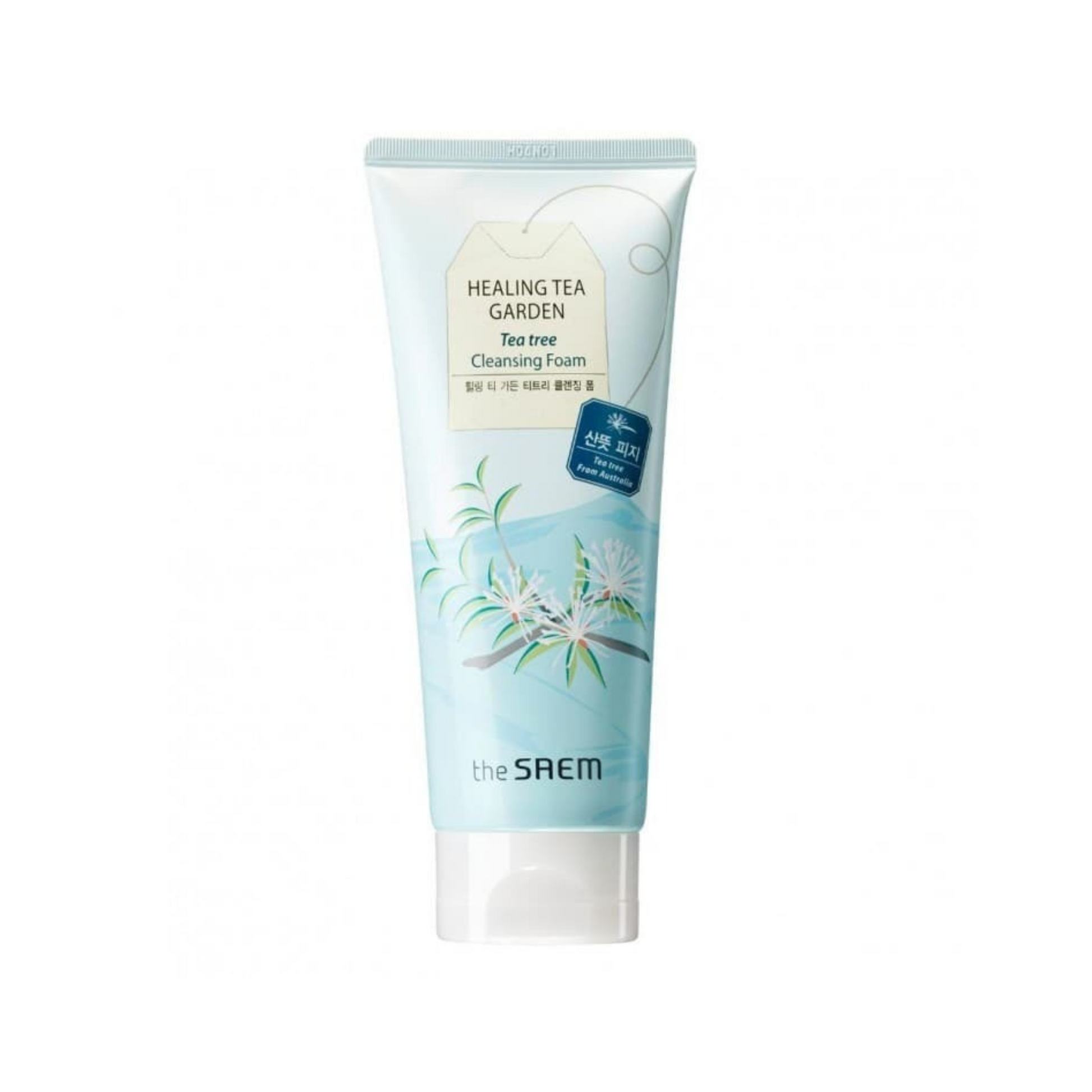 A purifying and soothing cleansing foam enriched with tea tree extract, designed to gently cleanse the skin while addressing acne, blemishes, and excess oil.